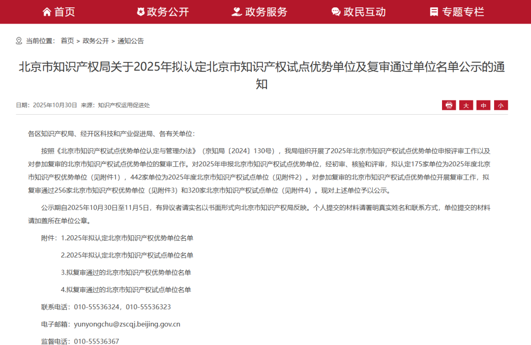 近日,北京市知识产权局正式公布《2025年度北京市知识产权试点单位名单》,天创信用服务有限公司凭借在知识产权领域的扎实积累与创新成果,荣获“北京市知识产权试点单位”称号。这一荣誉标志着公司在知识产权创造、运用、管理及保护等方面的综合实力获得权威认可。